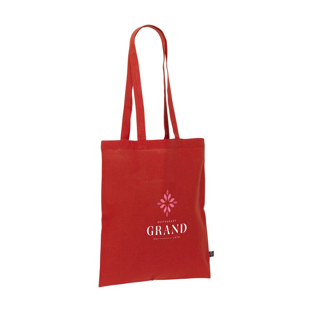 Einkaufstasche mit langen Griffen aus 80% recycelter Baumwolle und 20% recyceltem Polyester (150 g/m²). GRS-zertifiziert. Recyceltes Material insgesamt: 100%. Fassungsvermögen ca. 8 Liter.