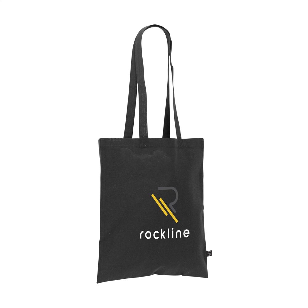 Einkaufstasche mit langen Griffen aus 80% recycelter Baumwolle und 20% recyceltem Polyester (150 g/m²). GRS-zertifiziert. Recyceltes Material insgesamt: 100%. Fassungsvermögen ca. 8 Liter.