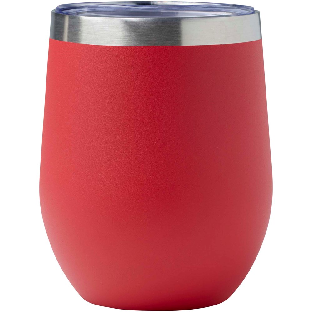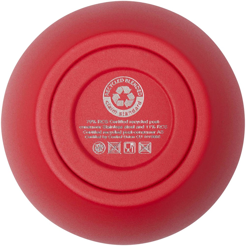 Der Corzo besteht aus RCS-zertifiziertem Edelstahl und verfügt über eine doppelwandige Vakuumkonstruktion mit Kupferisolierung, die Getränke 6 Stunden lang heiß oder 24 Stunden lang kalt hält. Die Konstruktion verhindert Kondensation an der Außenseite des Bechers. Einfaches trinken, Deckel zum Andrücken. Mit Sprüh-Pulverbeschichtung auf der Außenseite. Eine breite Öffnung zum bequemen Befüllen und Ausgießen. Das Fassungsvermögen beträgt 350 ml. Verpackt in einer Geschenkbox aus recyceltem Karton.