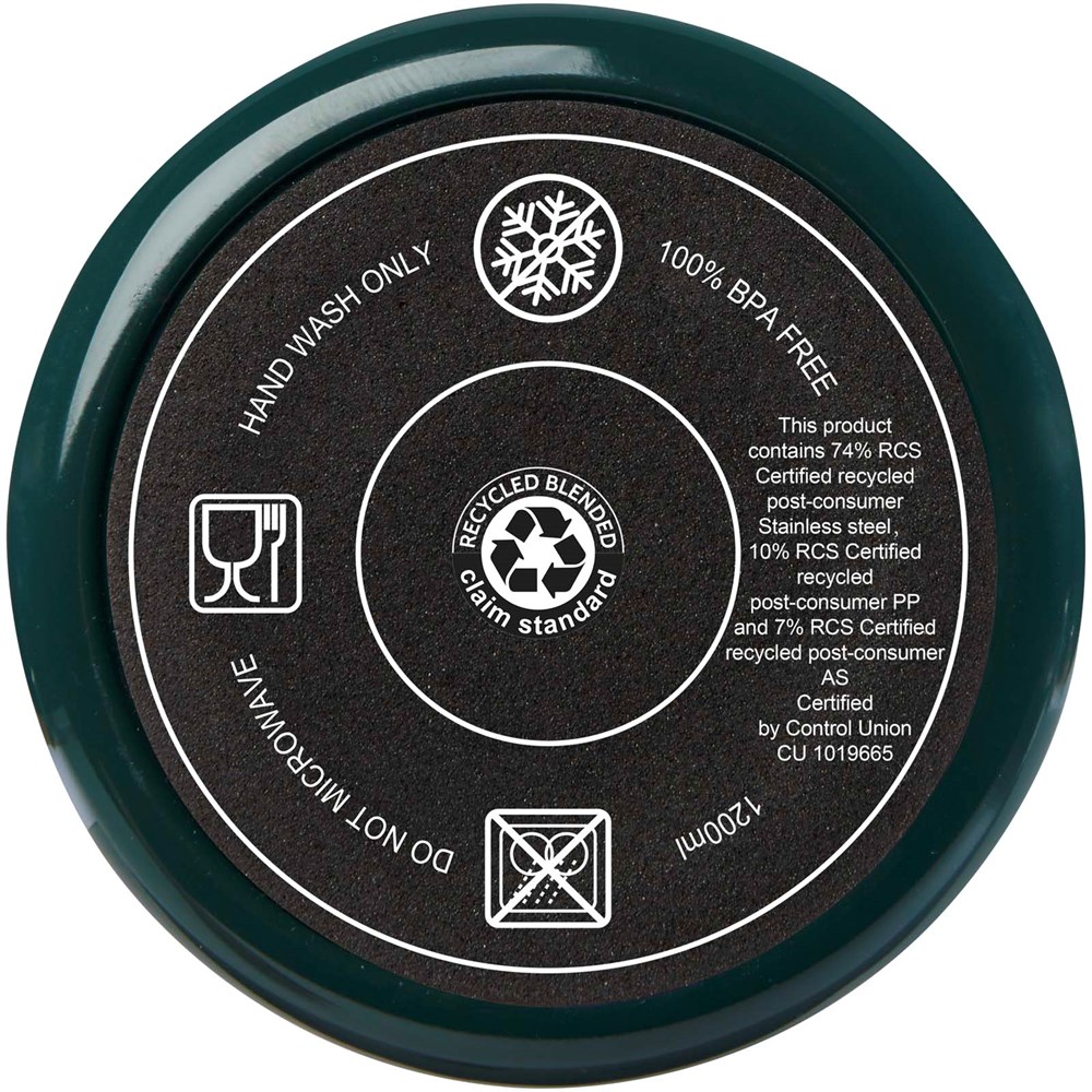 Der Melbourne Becher hat eine doppelwandige Luftisolierung und hält Getränke bis zu 2 Stunden heiß und bis zu 4 Stunden kalt. Die Innenwand des Bechers besteht aus recyceltem Kunststoff, die Außenwand aus RCS-zertifiziertem, recyceltem Edelstahl. Der Becher hat ein Fassungsvermögen von 1.200 ml, damit Sie den ganzen Tag lang stilvoll mit Flüssigkeit versorgt sind. Mit spritzwassergeschütztem Druckdeckel mit zwei Öffnungen und Drehverschluss. Mit lebensmittelechtem und recyceltem Trinkhalm. Nur von Hand reinigen.