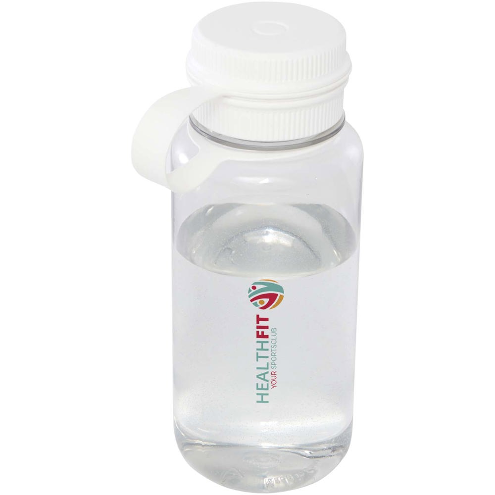 Einwandige Sportflasche aus RCS-zertifiziertem RPET mit Schraubverschluss und auslaufsicherem Deckel mit praktischem Tragegriff im Verschluss. Konstruktion mit zwei Öffnungen für einfache Reinigung und Befüllung. Entspricht dem von der EFSA (Europäische Behörde für Lebensmittelsicherheit) genehmigten PET-Recyclingverfahren. Fassungsvermögen: 900 ml.