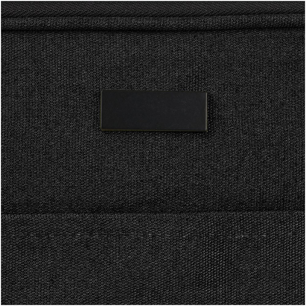 Die Joey 14" Laptophülle besteht aus GRS recyceltem Canvas und GRS RPET-Futter, und verfügt über ein geschütztes Laptopfach und eine offene Vordertasche mit Klettverschluss. Die dekorative Metallplatte kann ein Logo durch ihre dezente und matte Oberfläche zum Leuchten bringen.