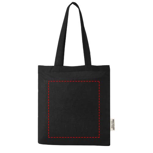 Die Tragetasche Madras aus 100 % GRS-zertifizierter recycelter Baumwolle ist die perfekte Tasche zum Verschenken bei Veranstaltungen, Konferenzen oder als Einkaufstasche für kleine Einkäufe. Die Baumwolldichte von 140 g/m² Baumwolle macht die Tasche robust, langlebig und geeignet, um schwere Gegenstände zu transportieren. Mit einer Tragegriffhöhe von 30cm (Tragegrifflänge 60cm) lässt sich diese Tasche gut tragen. Die für diese Tragetasche verfügbaren Druckverfahren sind ebenfalls GRS-zertifiziert, so dass die gesamte Lieferkette transparent und zertifiziert ist. Hergestellt in Indien. Beständigkeit bis zu 5kg.