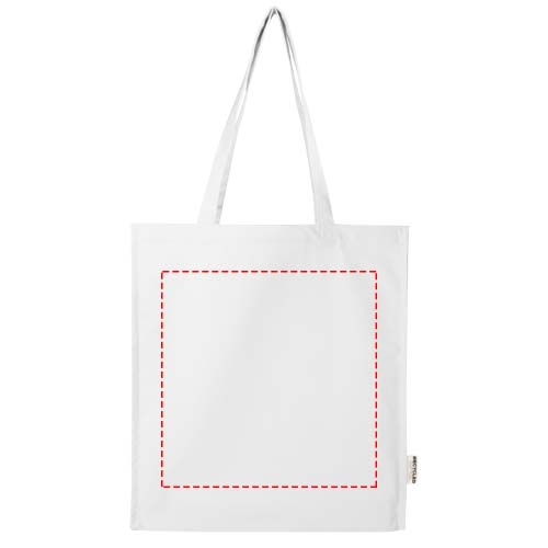 Die Florida Tragetasche mit Seitenfalten wird aus 100 % GRS-zertifizierter, Recyclingbaumwolle mit einem Gewicht von 270 g/m² hergestellt und ist eine verantwortungsbewusste und nachhaltige Wahl für den täglichen Bedarf. Mit einem Fassungsvermögen von bis zu 14 Litern und 30 cm langen Griffen ist sie ideal für den mühelosen Transport von Lebensmitteln, Büchern oder Alltagsgegenständen.
