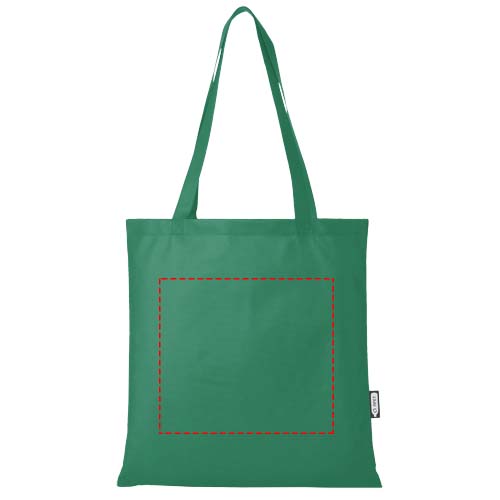 Die Zeus GRS-recycelte große Tragetasche aus strapazierfähigem und reißfestem RPET ist eine perfekte und nachhaltigere Option für Messen oder Konferenzen. Ihr schlankes Design macht sie zu einem eleganten Modell, das sich für den Transport von leichten Gegenständen wie einem Notebook und einem Stift eignet. Die Griffe sind 29 cm lang, sodass die Tragetasche leicht über der Schulter getragen werden kann. Belastbarkeit bis zu 5 kg.
