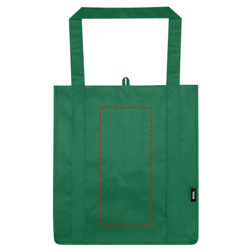 Die Liberty Tragetasche aus GRS-zertifiziertem Recyclingmaterial besteht aus strapazierfähigem und reißfestem RPET-Non Woven und verfügt über einen harten Boden, der sie vielseitig und stabil macht. Die Tasche hat ein großes Hauptfach und 25 cm lange Tragegriffe. Fassungsvermögen: 29 Liter. Beständigkeit bis zu 12 kg.
