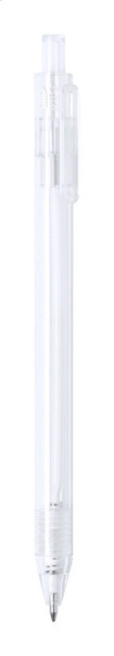 Transparenter Kugelschreiber aus RPET-Kunststoff mit farbigem Drücker. Blauschreibend. mehr