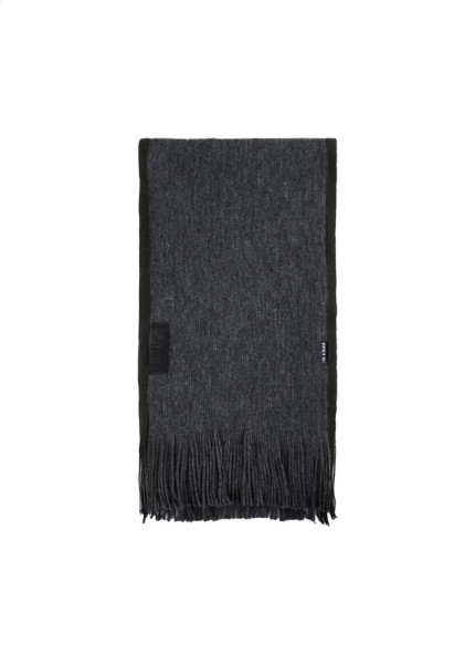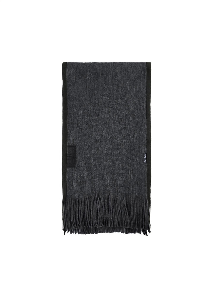 Eleganter Schal aus RPET Polyester mit RPET-Label, einzeln in schwarzer Geschenkbox.