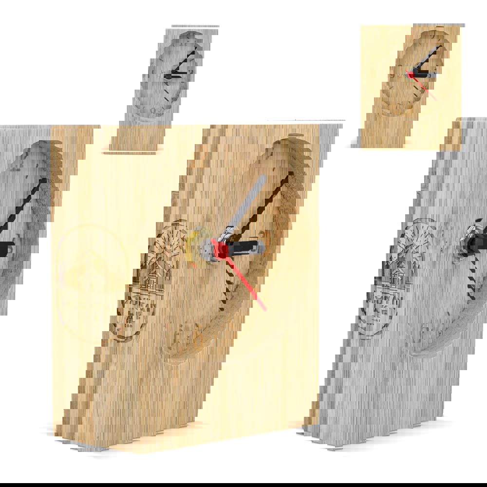 Eine moderne, minimalistische rechteckige Tischuhr aus Bambus. Mit klaren Linien und einer gut... mehr