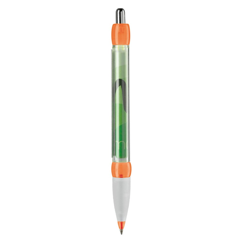 Transparenter Kugelschreiber mit Gummimanschette und integriertem Werbebanner, beidseitig in Full-colour. Ein optimaler und kompletter Werbeträger! Ausgestattet mit blauer X20-Mine. Werbeanbringung zusätzlich auf dem Schaft oder dem Clip möglich. Lieferzeit ca. 6 Wochen.