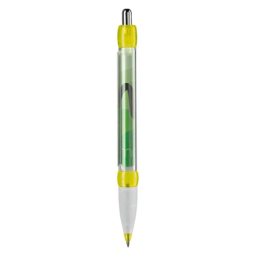 Transparenter Kugelschreiber mit Gummimanschette und integriertem Werbebanner, beidseitig in Full-colour. Ein optimaler und kompletter Werbeträger! Ausgestattet mit blauer X20-Mine. Werbeanbringung zusätzlich auf dem Schaft oder dem Clip möglich. Lieferzeit ca. 6 Wochen.