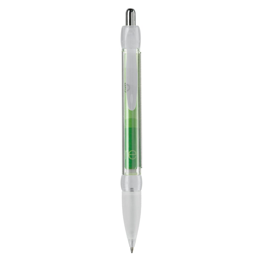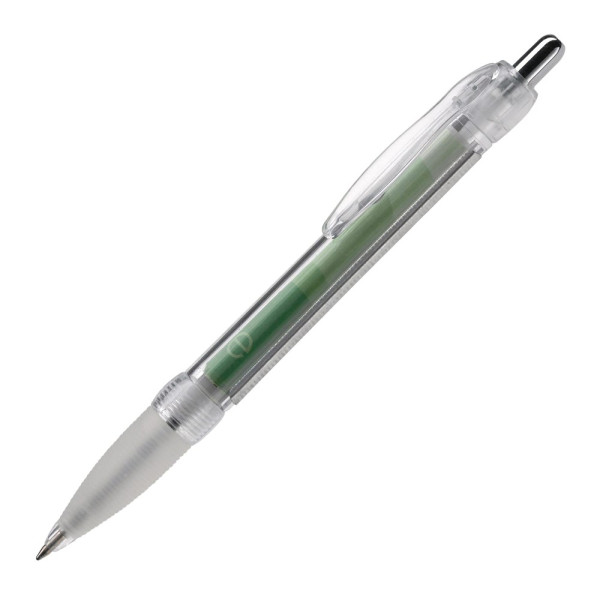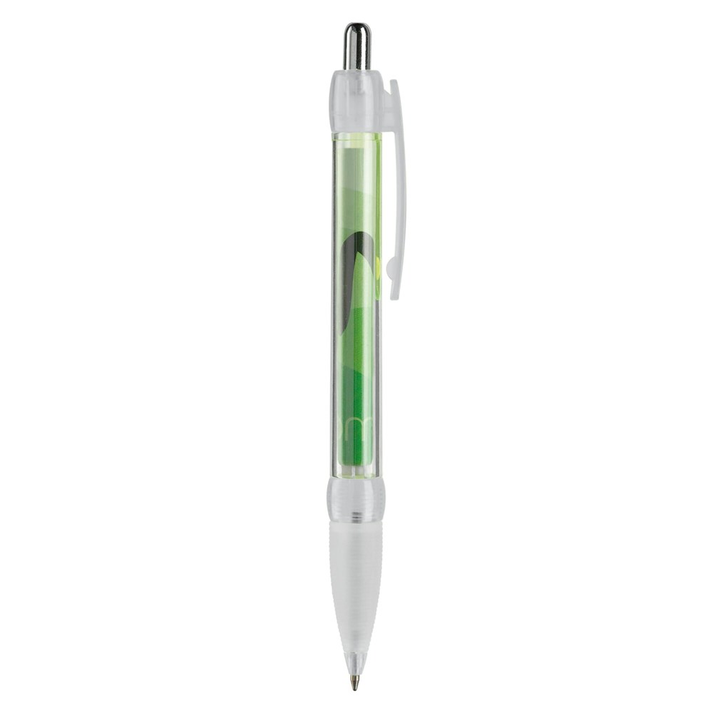 Transparenter Kugelschreiber mit Gummimanschette und integriertem Werbebanner, beidseitig in Full-colour. Ein optimaler und kompletter Werbeträger! Ausgestattet mit blauer X20-Mine. Werbeanbringung zusätzlich auf dem Schaft oder dem Clip möglich. Lieferzeit ca. 6 Wochen.