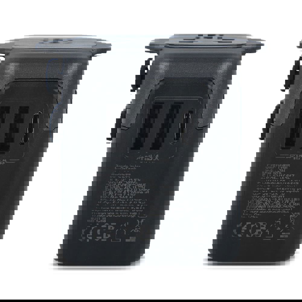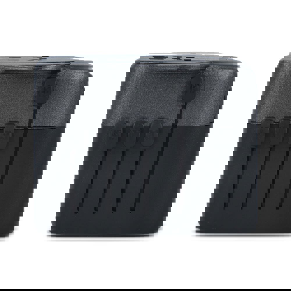 Reisen Sie mit dem leistungsstarken Travel Adapter in über 150 Länder. Durch sein kompaktes Design und geringes Gewicht (nur 140 g) eignet er sich perfekt für leichtes Gepäck. Mit Sicherheitsverschluss, Anti-Single-Plug-in und Anti-Schock-Funktion ist er babysicher - ideal für sorgenfreie Familienreisen. Der Adapter ist aus recyceltem Kunststoff hergestellt.