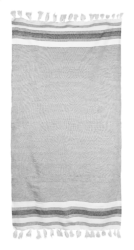 Zweifarbig gestreiftes Pareo Strandtuch aus 70% Baumwolle und 30% Polyester, 210 g/m²).