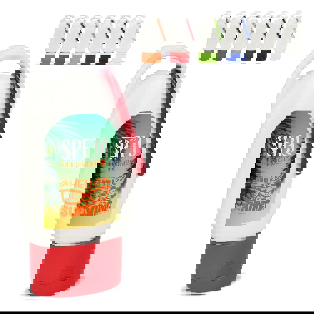 Sonnenschutzlotion mit Karabiner SPF30 aus recyceltem Material