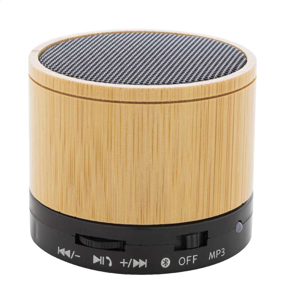 Kabelloser Lautsprecher in einem Gehäuse aus recyceltem ABS und Bambus mit Metallgitter und wiederaufladbarem Akku (300 mAh). Mit Freisprechfunktion und Wiedergabe von MP3s über Micro-SD-Karte. Inklusive USB-Ladekabel.