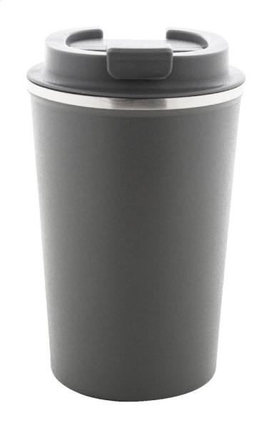 Doppelwandiger Thermobecher aus Edelstahl mit Trinkdeckel. Füllmenge: 350 ml.