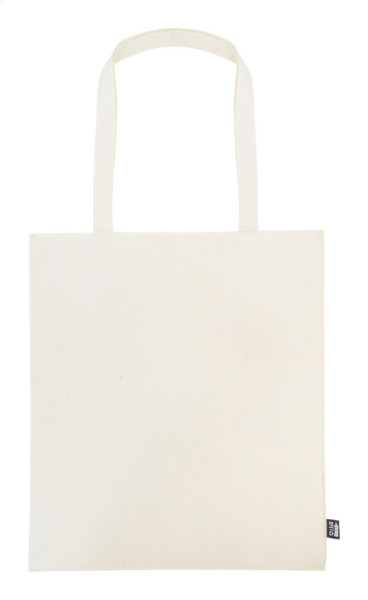 Einkaufstasche aus RPET-Filz mit langen Griffen. Mit RPET-Label.