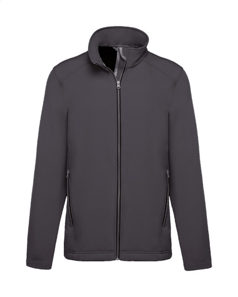 Doppellagige Softshelljacke mit Reißverschluss und seitlichen Reißverschlusstaschen. Mit kontrastfarbenen Reißverschlüssen. Wasserabweisendes Material. Außen: 95 % Polyester und 5 % Elasthan. Innen: 100 % Polyester-Micro-Polarfleece. 300 g/m². Marke: Kariban.