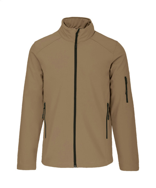 Softshell-Jacke mit Reißverschluss – dreilagig, atmungsaktiv, wind- und wasserdicht – mit Reißverschlusstaschen an Ärmeln und Seiten. Mit atmungsaktiver Zwischenschicht und innenliegendem Micro-Polar-Fleece. 95 % Polyester, 5 % Elasthan, 300 g/m². Marke: Kariban.