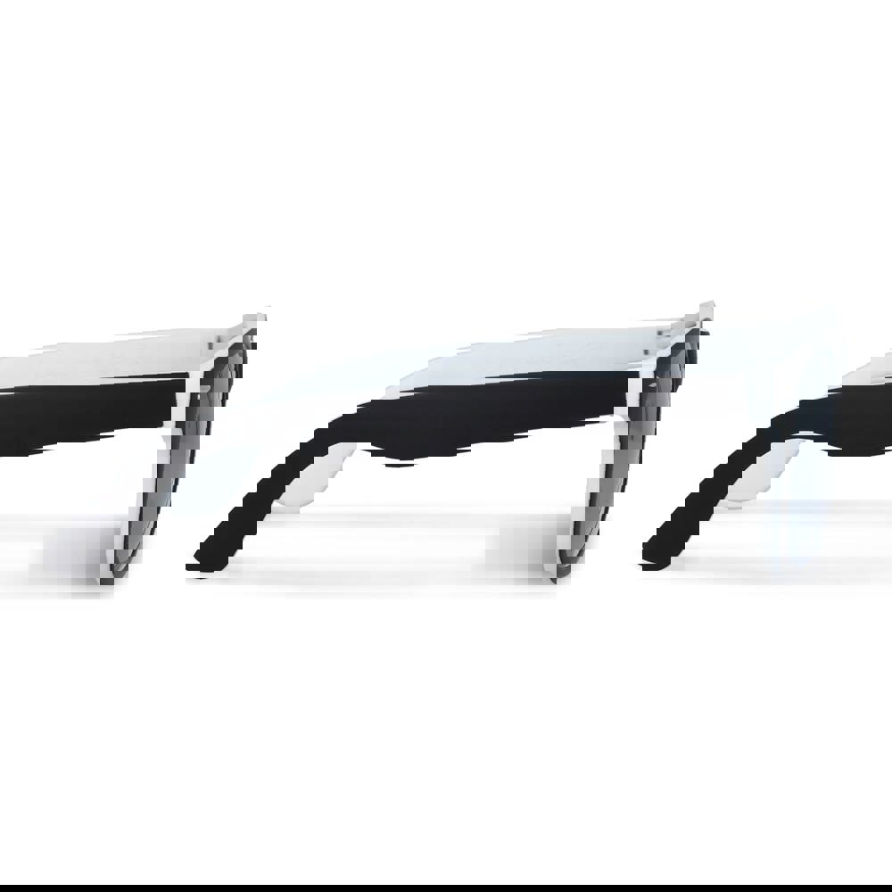 Stylische Sonnenbrille mit trendigem zweifarbigem Rahmen und auffälligen Spiegelgläsern. UV400-Filter. Eine moderne Wahl für auffällige Promotions und Events.