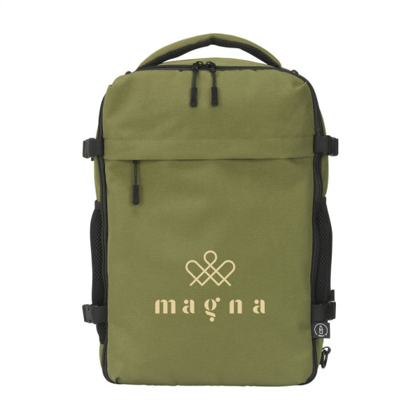 Dieser kompakte und vielseitige Cabin Flight Rucksack wurde als Handgepäck für alle Fluggesellschaften entwickelt. Er passt problemlos unter jeden Flugzeugsitz. Mit einem Fassungsvermögen von ca. 20 Litern bietet der Rucksack überraschend viel Stauraum, während sein geringes Gewicht für hohen Tragekomfort sorgt. Die Außenseite besteht aus robustem recyceltem RPET 900D-Polyester. Komplett gefüttert mit recyceltem RPET 210D-Polyester. Das geräumige Hauptfach mit Reißverschluss und doppelten Schiebern ist ideal für Kleidung und verfügt über einen praktischen Organizer für Telefon, persönliche Dokumente und andere wichtige Dinge. Ein zusätzliches gepolstertes Laptopfach bietet sicheren Schutz für Laptops bis zu 15,6 Zoll. Die Tasche hat auf beiden Seiten elastische Netztaschen, ideal für eine Wasserflasche oder kleine Accessoires. Auf der Rückseite befindet sich ein zusätzliches Reißverschlussfach. Die Schultergurte sind oben in diesem Reißverschlussfach befestigt und unten mit einem Karabinerhaken verschlossen. Durch Lösen der Haken können die Gurte vollständig im Reißverschlussfach verstaut werden, wodurch die Tasche noch kompakter wird. Die verstellbaren, gepolsterten Schultergurte, das gepolsterte Rückenteil und der stabile Griff mit Mesh-Futter sorgen für optimalen Tragekomfort, auch auf längeren Reisen. Inklusive abnehmbarem Schultergurt. Ein integrierter Trolley-Gurt erleichtert das Befestigen des Rucksacks an einem Koffer. Dieser Rucksack ist der perfekte Begleiter für jede Flugreise. GRS-zertifiziert. Gesamtes recyceltes Material: 50%.