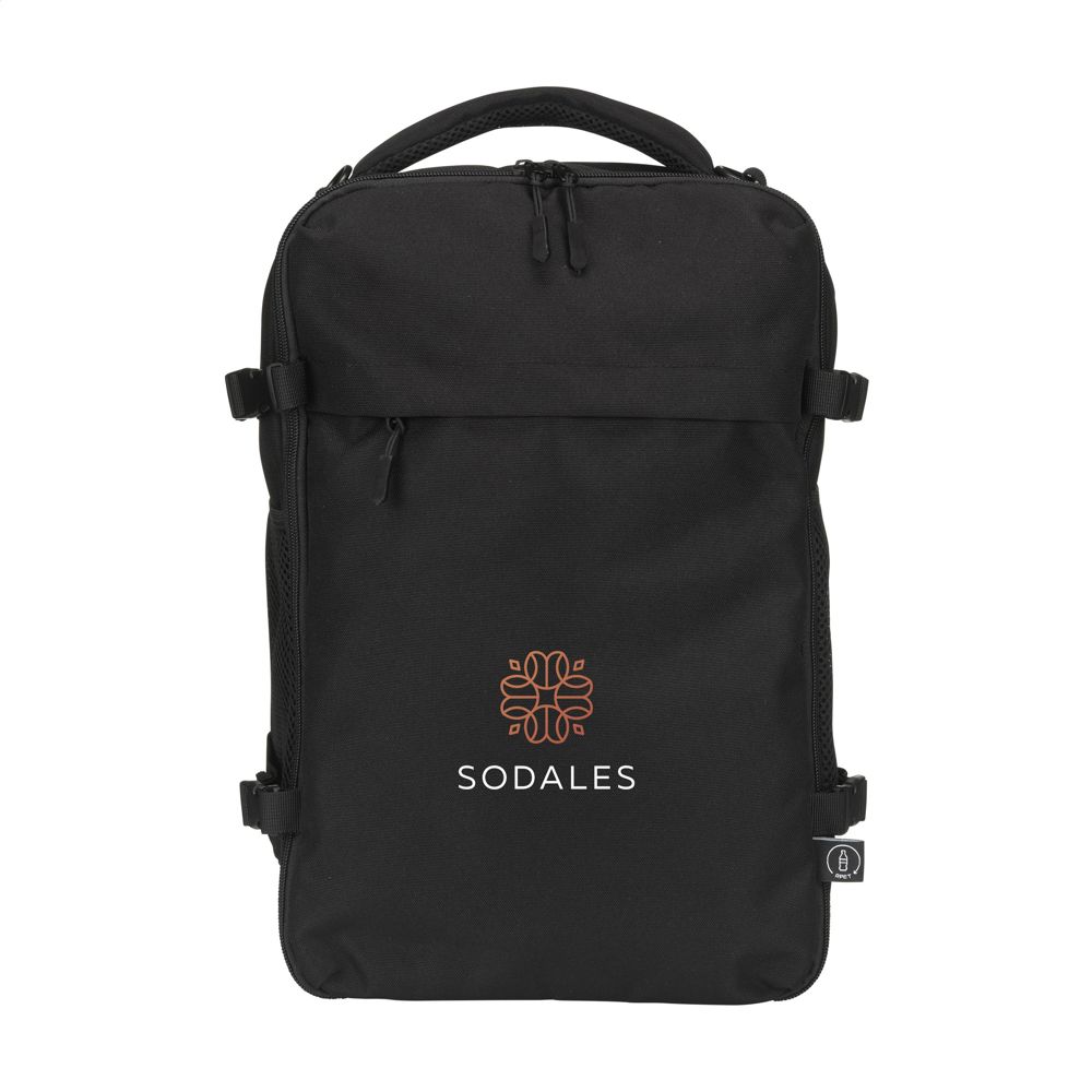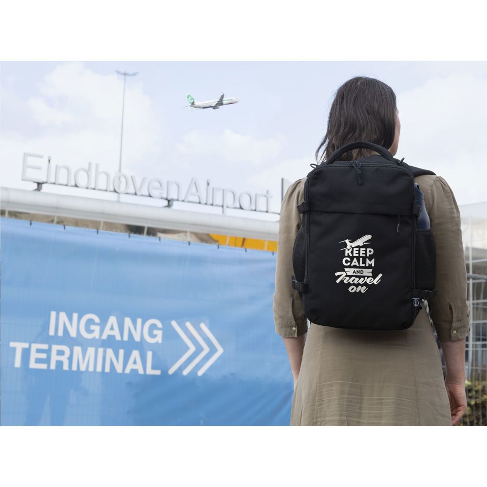 Dieser kompakte und vielseitige Cabin Flight Rucksack wurde als Handgepäck für alle Fluggesellschaften entwickelt. Er passt problemlos unter jeden Flugzeugsitz. Mit einem Fassungsvermögen von ca. 20 Litern bietet der Rucksack überraschend viel Stauraum, während sein geringes Gewicht für hohen Tragekomfort sorgt. Die Außenseite besteht aus robustem recyceltem RPET 900D-Polyester. Komplett gefüttert mit recyceltem RPET 210D-Polyester. Das geräumige Hauptfach mit Reißverschluss und doppelten Schiebern ist ideal für Kleidung und verfügt über einen praktischen Organizer für Telefon, persönliche Dokumente und andere wichtige Dinge. Ein zusätzliches gepolstertes Laptopfach bietet sicheren Schutz für Laptops bis zu 15,6 Zoll. Die Tasche hat auf beiden Seiten elastische Netztaschen, ideal für eine Wasserflasche oder kleine Accessoires. Auf der Rückseite befindet sich ein zusätzliches Reißverschlussfach. Die Schultergurte sind oben in diesem Reißverschlussfach befestigt und unten mit einem Karabinerhaken verschlossen. Durch Lösen der Haken können die Gurte vollständig im Reißverschlussfach verstaut werden, wodurch die Tasche noch kompakter wird. Die verstellbaren, gepolsterten Schultergurte, das gepolsterte Rückenteil und der stabile Griff mit Mesh-Futter sorgen für optimalen Tragekomfort, auch auf längeren Reisen. Inklusive abnehmbarem Schultergurt. Ein integrierter Trolley-Gurt erleichtert das Befestigen des Rucksacks an einem Koffer. Dieser Rucksack ist der perfekte Begleiter für jede Flugreise. GRS-zertifiziert. Gesamtes recyceltes Material: 50%.