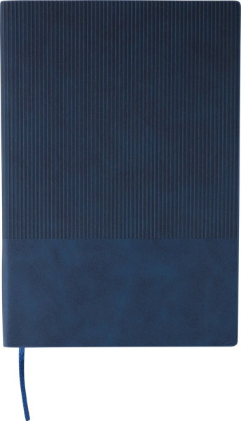 Recyceltes PU-Notizbuch (ca. A5) mit festem Einband und Kordeloptik auf dem oberen Teil der Vorder- und Rückseite. Mit Lesezeichenband und 100 linierten Seiten aus (80 g/m²) Papier. Mit geprägtem Recycling-Logo auf der Rückseite.