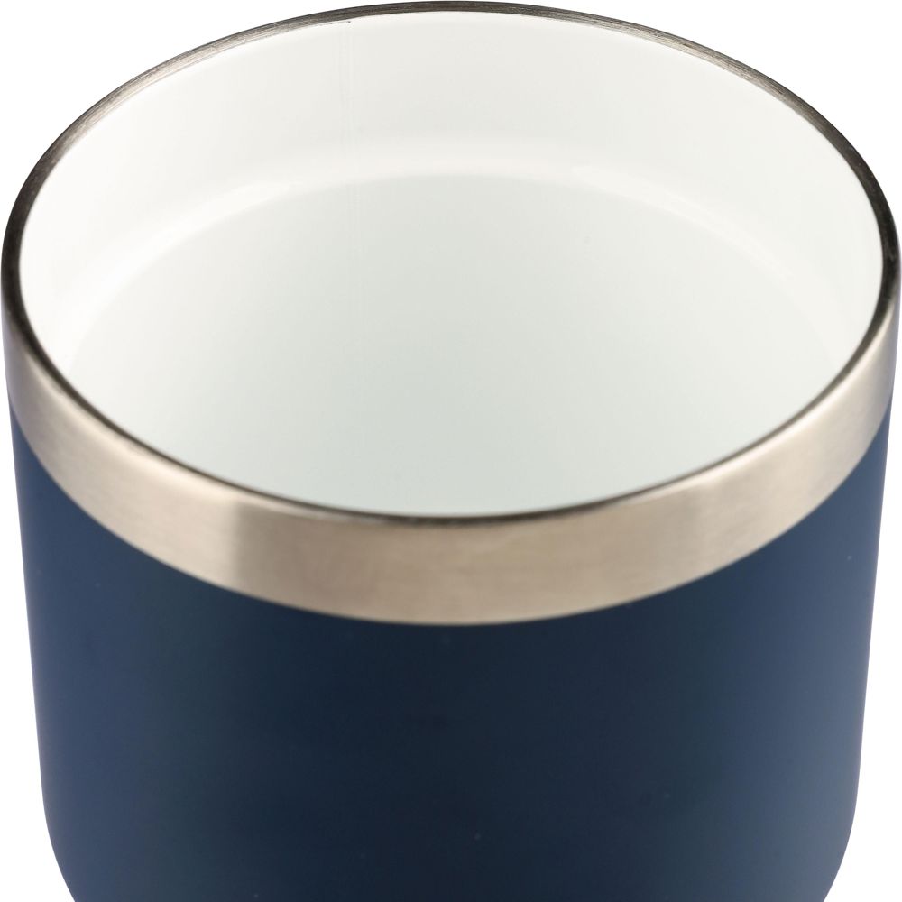 Kaffeebecher aus recyceltem Edelstahl mit einem Fassungsvermögen von 350 ml. Die Innenseite ist mit Keramik beschichtet, während die Außenseite aus Edelstahl 201 und die Innenwand aus Edelstahl 304 besteht. Auf dem Korpus ist ein Recycling-Logo eingraviert. Der Becher ist einzeln in einer braunen Pappschachtel verpackt.