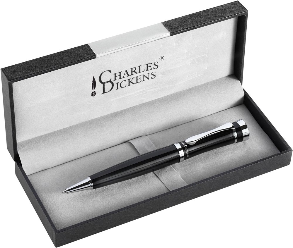 Charles Dickens Kugelschreiber, mit schwarzer Mine und Geschenk-Etui mit Metallplakette. mehr