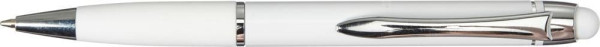 Kugelschreiber aus Metall, mit Drehfunktion, Clip aus Metall, gummierte Griffzone, Touch-Pen und schwarzer Mine.