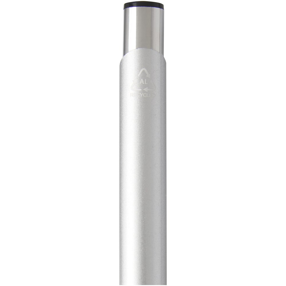 Kugelschreiber aus recyceltem Aluminium in lackierter Ausführung, poliert, glänzend, mit markanten Chromdetails. Recyceltes Aluminium ist eine nachhaltigere Option, da weniger Energie benötigt wird als bei der Herstellung von Aluminium aus Primärrohstoffen. Es reduziert außerdem die Abfallmenge auf Mülldeponien und trägt dazu bei, natürliche Ressourcen zu schonen und Treibhausgasemissionen zu reduzieren. Schwarze Tinte. Schreiblänge: 600 Meter.