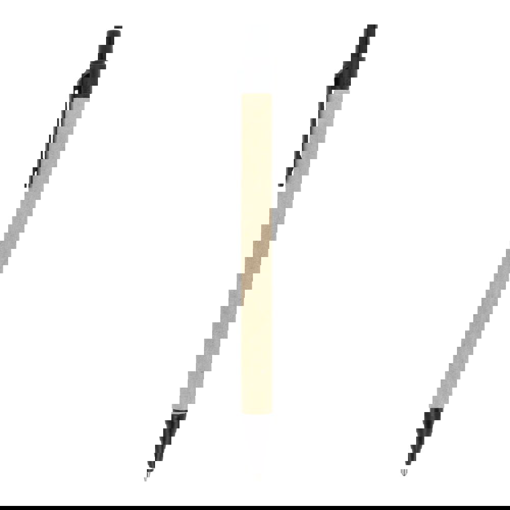 Papierkugelschreiber mit farbigen Kunststoffteilen aus recyceltem Material. Mit blauer Schreibmine.