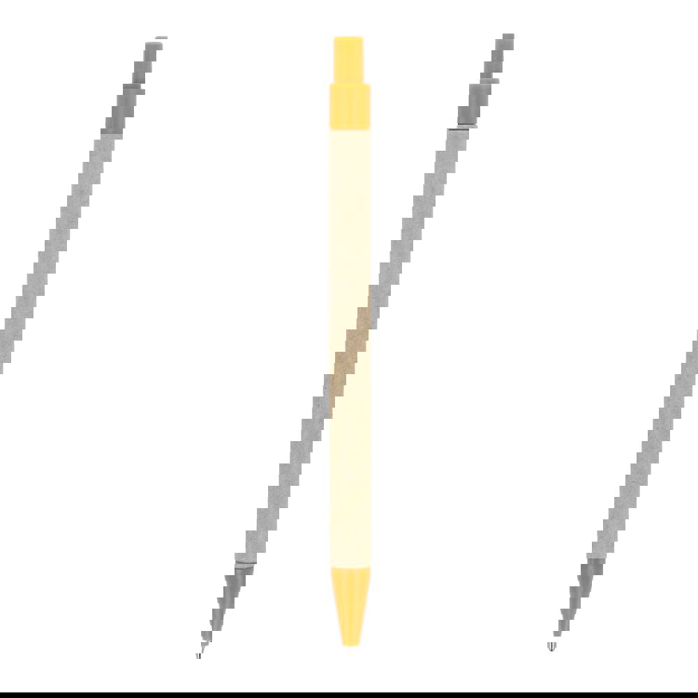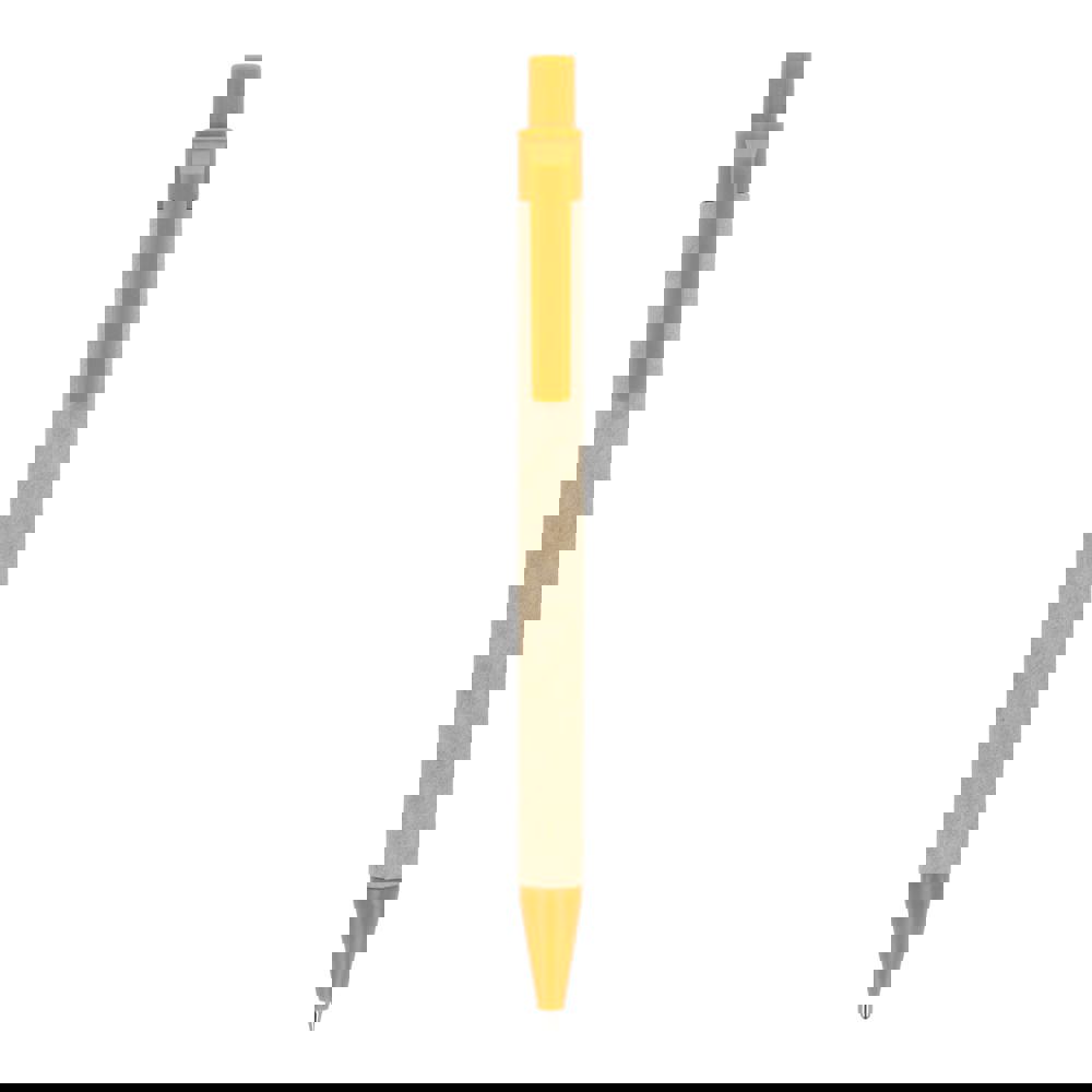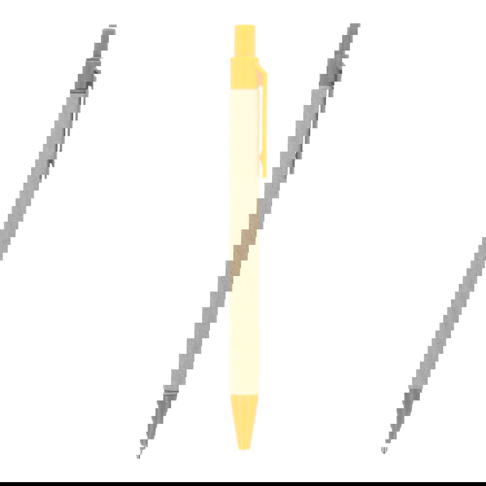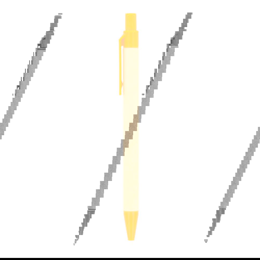 Papierkugelschreiber mit farbigen Kunststoffteilen aus recyceltem Material. Mit blauer Schreibmine. mehr