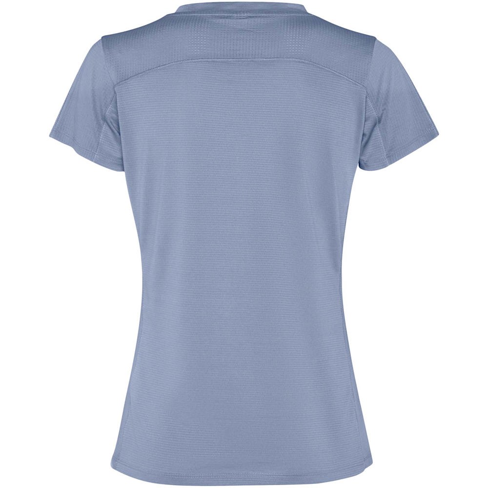 Leichter Stoff aus recyceltem Polyester. Kragen mit gekreuztem Detail und Abdecknähten. Rückenpasse und Ärmel aus atmungsaktivem Stoff. Vorwärts- und Schrägnähte an den Seiten und Schultern. Abgerundeter Saum. Kombination aus atmungsaktiven und elastischen Stoffen. Abnehmbares Etikett.