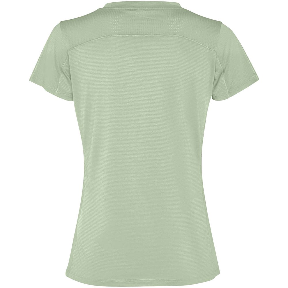 Leichter Stoff aus recyceltem Polyester. Kragen mit gekreuztem Detail und Abdecknähten. Rückenpasse und Ärmel aus atmungsaktivem Stoff. Vorwärts- und Schrägnähte an den Seiten und Schultern. Abgerundeter Saum. Kombination aus atmungsaktiven und elastischen Stoffen. Abnehmbares Etikett.