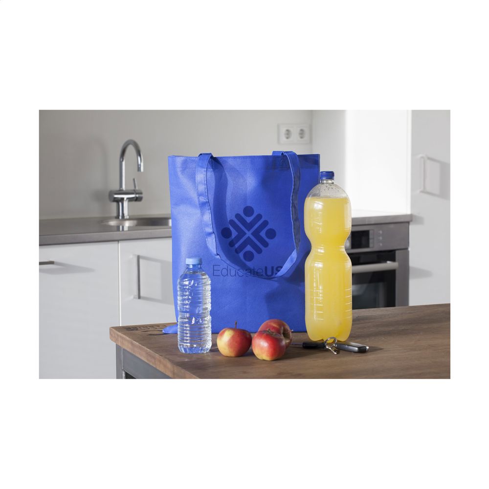 Einkaufstasche mit langen Henkeln aus "non woven" Material (80 g/m²): eine superleichte, starke Kunstfaser. Fassungsvermögen ca. 8 Liter.