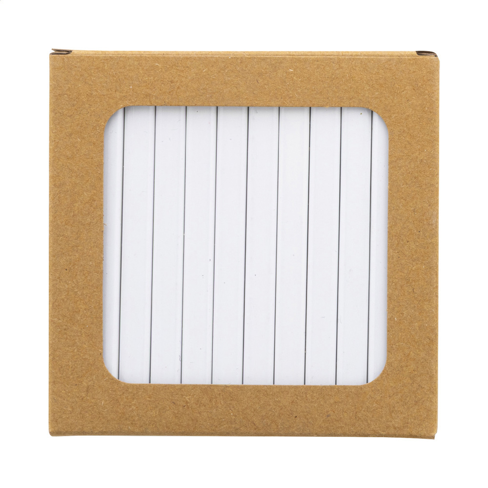 12-teiliges Holz-Buntstiftset, rechteckig, mit weißer Oberfläche. In einer Kraftpapierbox mit großem Fenster. Ideal für vollflächigen UV-LED-Druck.