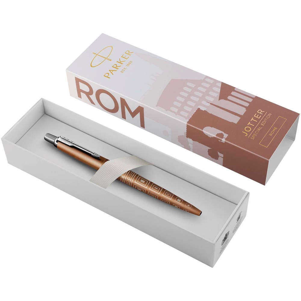 Parker Jotter SE Global Icons Kugelschreiber mit blauer Tinte, geliefert in einer Geschenkbox. Die Parker Jotter SE Global Icons ist eine Schreibgeräteserie von Parker, einer bekannten Marke mit einer langen Tradition in der Herstellung hochwertiger Schreibgeräte. Das „SE“ steht für Special Edition und das Thema Global Icons deutet auf ein Design hin, das ikonische Elemente aus aller Welt zelebriert. Schreiblänge: 2000 Meter.