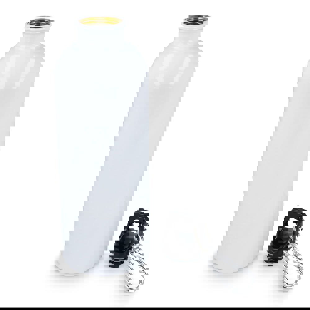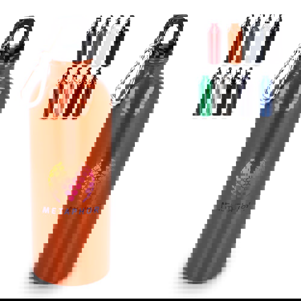 Eine robuste, einwandige 500-ml-Flasche aus recyceltem Edelstahl mit Karabinerhaken zum einfachen Befestigen an Taschen oder sonstige Ausrüstung. Die Flasche ist leicht, wiederverwendbar und ideal, um unterwegs ausreichend Flüssigkeit zu sich zu nehmen. Erhältlich in verschiedenen glänzenden und metallic Farben. Jede Flasche ist in einer Geschenkbox verpackt.