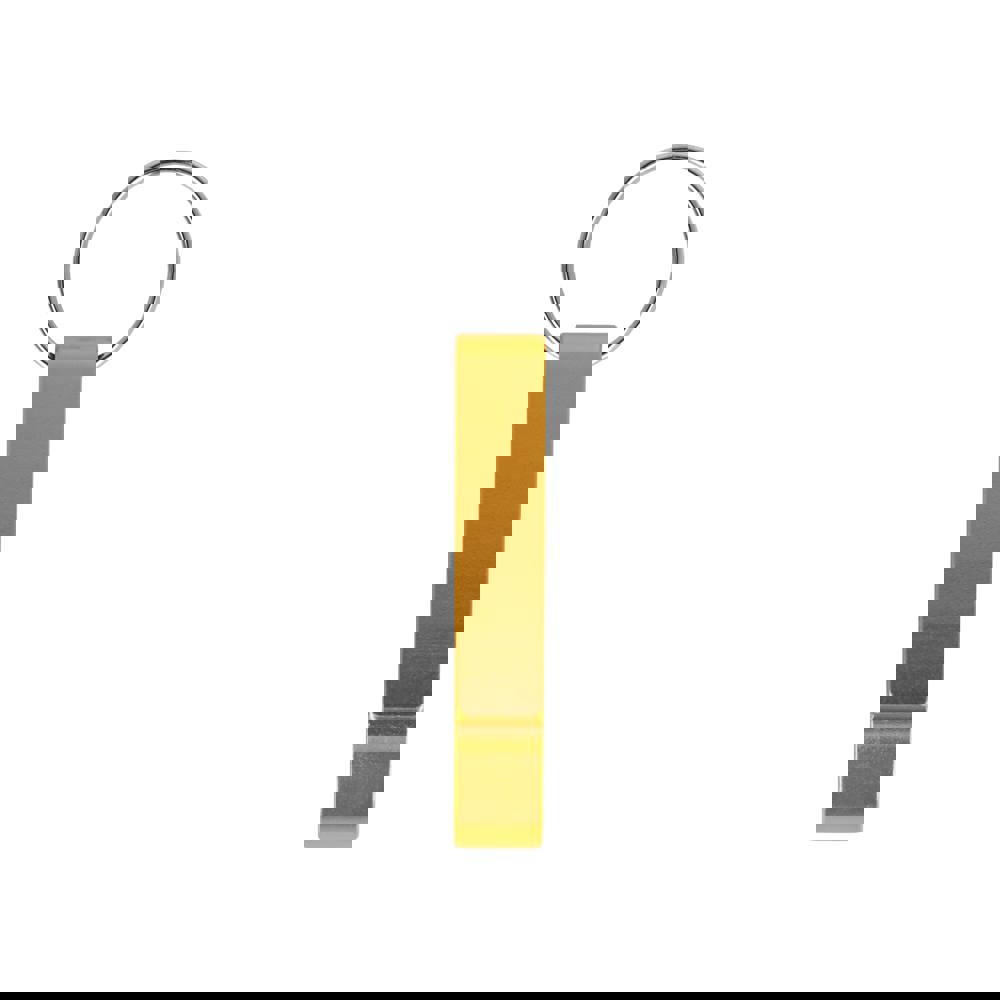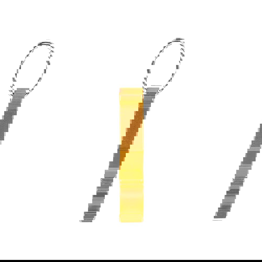 Aluminium-Schlüsselanhänger mit kombiniertem Flaschen- und Dosenöffner. Leicht, langlebig und ideal für den täglichen Gebrauch.