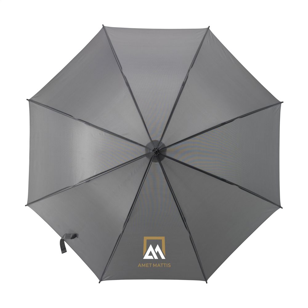 Regenschirm mit automatischer Teleskopöffnung, 190T Polyester-Bespannung, Fiberglasrahmen, Metallschaft, Softgriff und Klettverschluss.