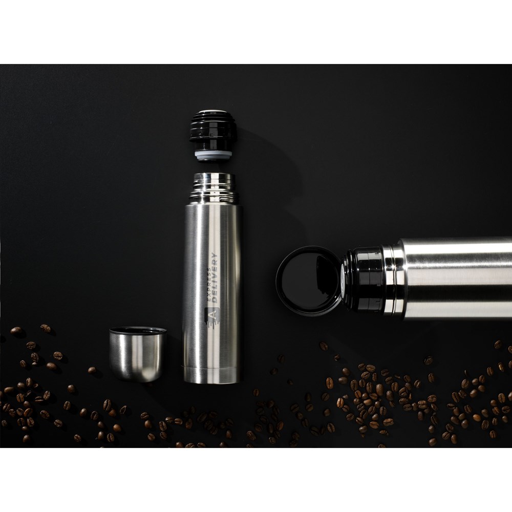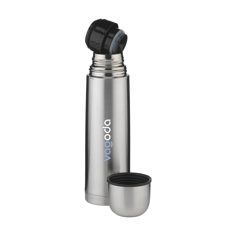 Doppelwandige, vakuumisolierte, rostfreie Thermoflasche aus recyceltem Edelstahl. Unzerbrechlich und unverwüstlich. Der Vakuumraum zwischen den Wänden isoliert den Inhalt und hält Getränke lange Zeit warm oder kalt. Mit Schraubdeckel/Trinkbecher und handlichem Schanksystem mit Druckverschluss. Tropfsicher. Nicht spülmaschinengeeignet. RCS-zertifiziert. Gesamtes recyceltes Material: 69%. Fassungsvermögen 500 ml. Edelstahl kann viele Male recycelt werden – die Qualität des Materials bleibt dabei weitgehend erhalten. Durch die Verwendung von recyceltem Edelstahl kommt eine geringere Menge an neuen Rohstoffen zum Einsatz. Das bedeutet weniger Energieverbrauch und weniger Wasserverbrauch. Verpackt pro Stück.
