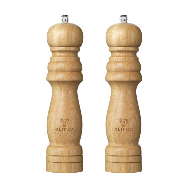 Set bestehend aus einer Pfeffermühle und einer Salzmühle aus Gummibaum-Holz. Dieses klassische Modell ist nach wie vor äußerst beliebt. Die Mahlscheiben der Mühlen sind aus Keramik gefertigt. Dadurch sind die Mühlen leistungsstark genug, um grobe Körner zu mahlen. Einfach nachzufüllen. Verpackt pro Set.