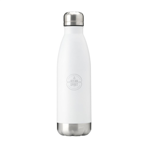 Doppelwandige, vakuumisolierte, rostfreie Wasserflasche/Thermoflasche. Mit tropfsicherem Schraubdeckel. Hergestellt in Metallic oder mit schöner, matter Beschichtung (nur schwarz und weiß). Geeignet zur Temperaturerhaltung von kaltem oder heißem Wasser. Nicht spülmaschinengeeignet. Fassungsvermögen 500 ml. Verpackt pro Stück.