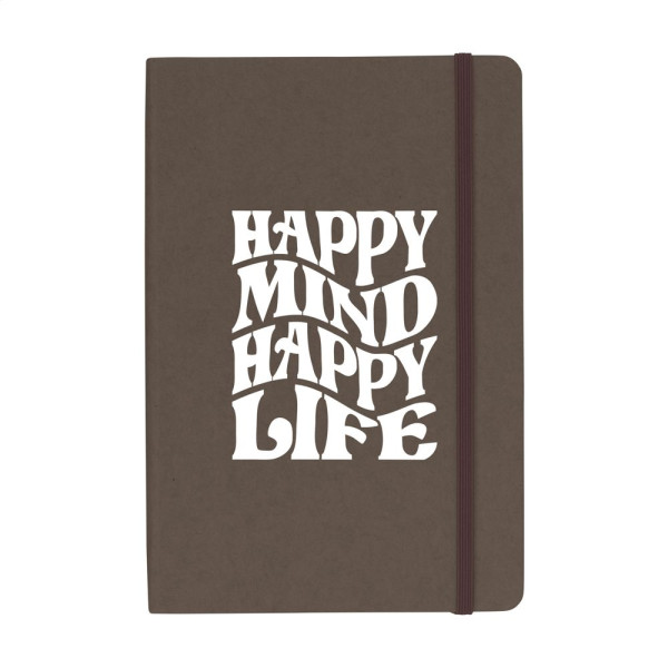 A5-Notizbuch mit Hardcover aus FSC Mix zertifiziertem Karton. Das Notizbuch umfasst ca. 80 Blatt/160 Seiten cremefarbenes, liniertes FSC Mix zertifiziertes Papier (70 g/m²). Mit gebundenem Buchrücken und praktischem Gummiverschluss.