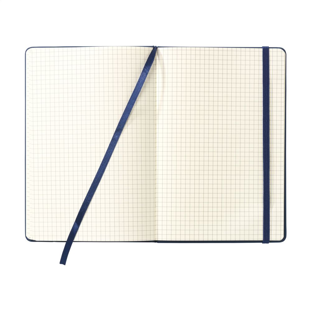 Notizbuch im A5-Format mit ca. 96 Blatt/192 Seiten cremefarbenem, FSC Mix zertifiziertem kariertem Papier (70 g/m²). Mit gebundenem Rücken, hartem Umschlag, Verschlussgummi und Polyester-Leselitze Das karierte Papier (5 x 5 mm) eignet sich ideal zum Rechnen, Zeichnen von Grafiken und Entwürfen sowie zum Ordnen von Informationen.