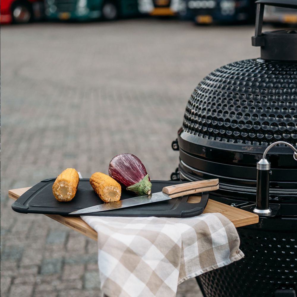 Praktisches Schneidebrett der Marke Homey's. Hergestellt aus robuster Holzfaser mit einer umlaufenden Rille zum Auffangen von Fleisch- oder Fruchtsaft. Die rutschfesten Ecken sorgen für zusätzlichen Halt beim Schneiden und sind für optimale Hygiene abnehmbar. Das Schneidebrettist nimmt weder Feuchtigkeit, Gerüche noch Bakterien auf. Dadurch bleibt das Brett hygienisch und leicht zu reinigen. Das Brett ist schmutzabweisend, hitzebeständig bis 180°C und spülmaschinengeeignet.