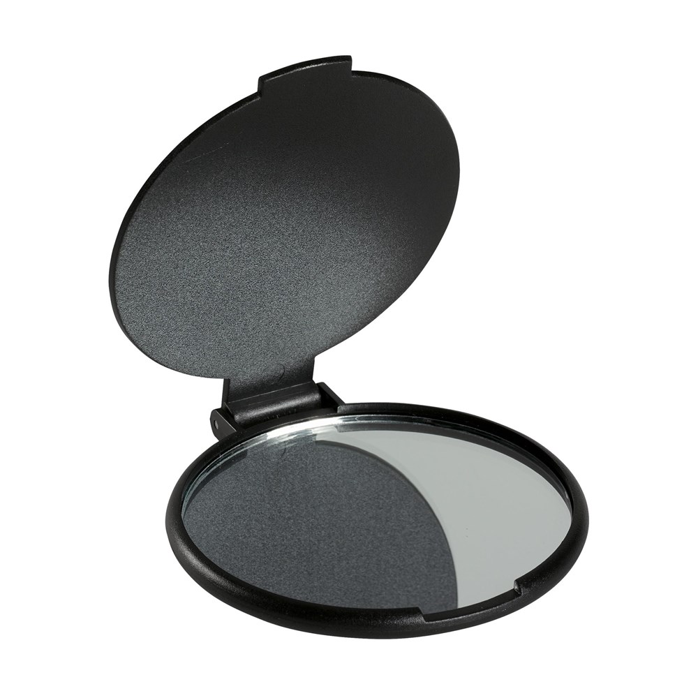 Spiegel in einem Kunststoffgehäuse mit Schutzklappe.