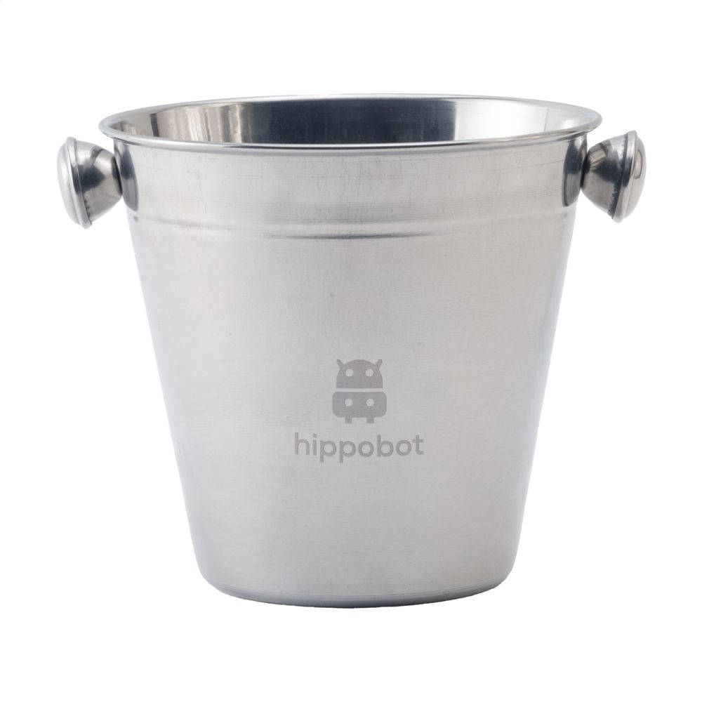 Stilvoller, glänzender Eiskübel aus Edelstahl. Perfekt zum Kühlen von Getränken auf Partys oder zu Hause. Dieses kleine Modell eignet sich hervorragend als Werbegeschenk und verleiht jedem Anlass einen Hauch von Eleganz. Fassungsvermögen 1.400 ml.